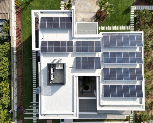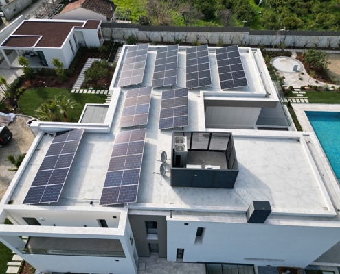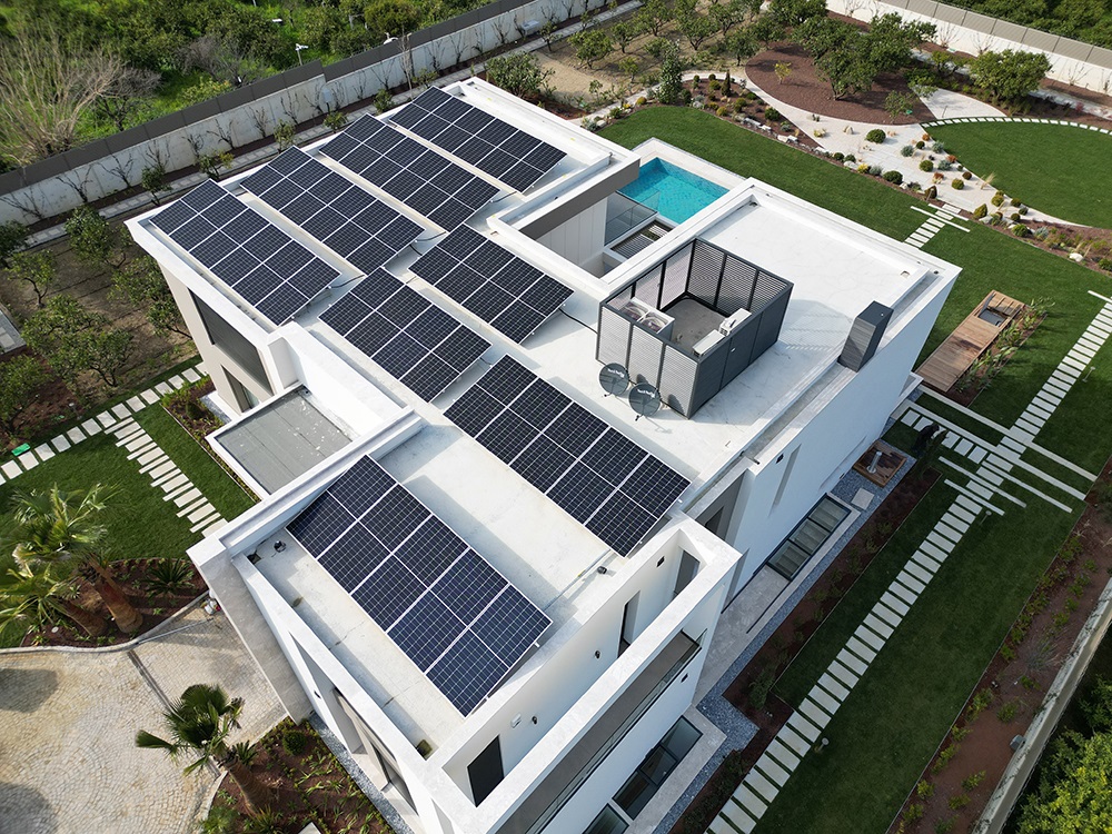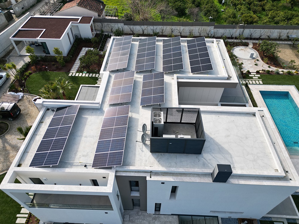 Optimizer çözümü ile kendi enerjisini üreten kurulumu tamamlanmış güneş enerjisinden elektrik üretim sistemi.